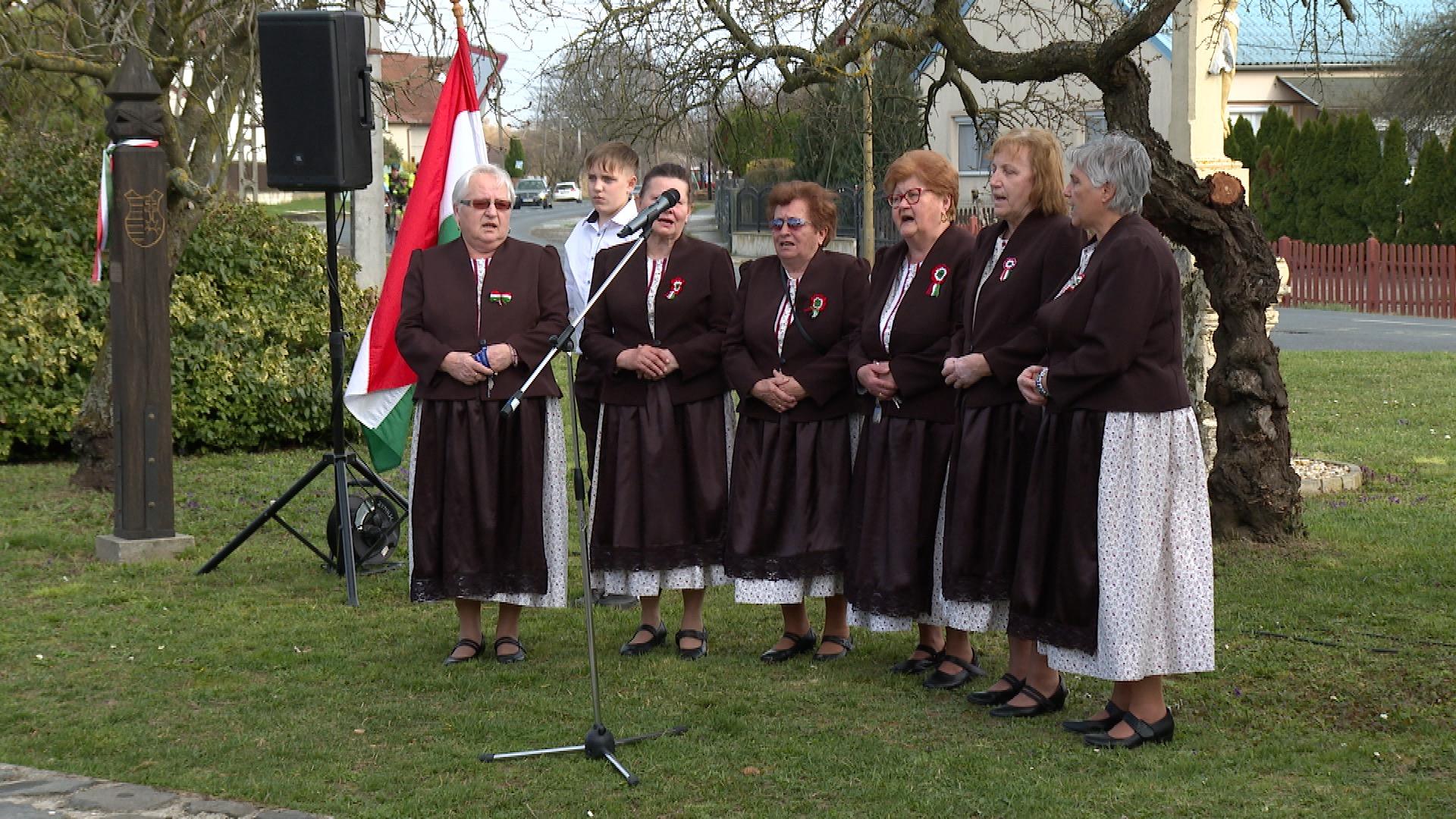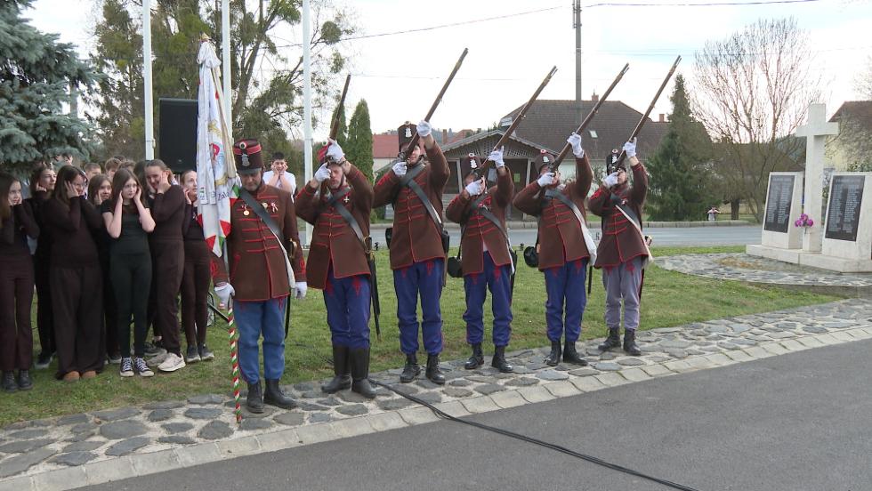 A harangszót követően a Himnuszt közösen énekelték el a megjelentek. Ezúttal az Öveges József Általános Iskola 6. osztályos tanulói készültek színvonalas előadással. A gyerekek a pénteki tanítási napon már a korabeli eseményekre hangolódtak.