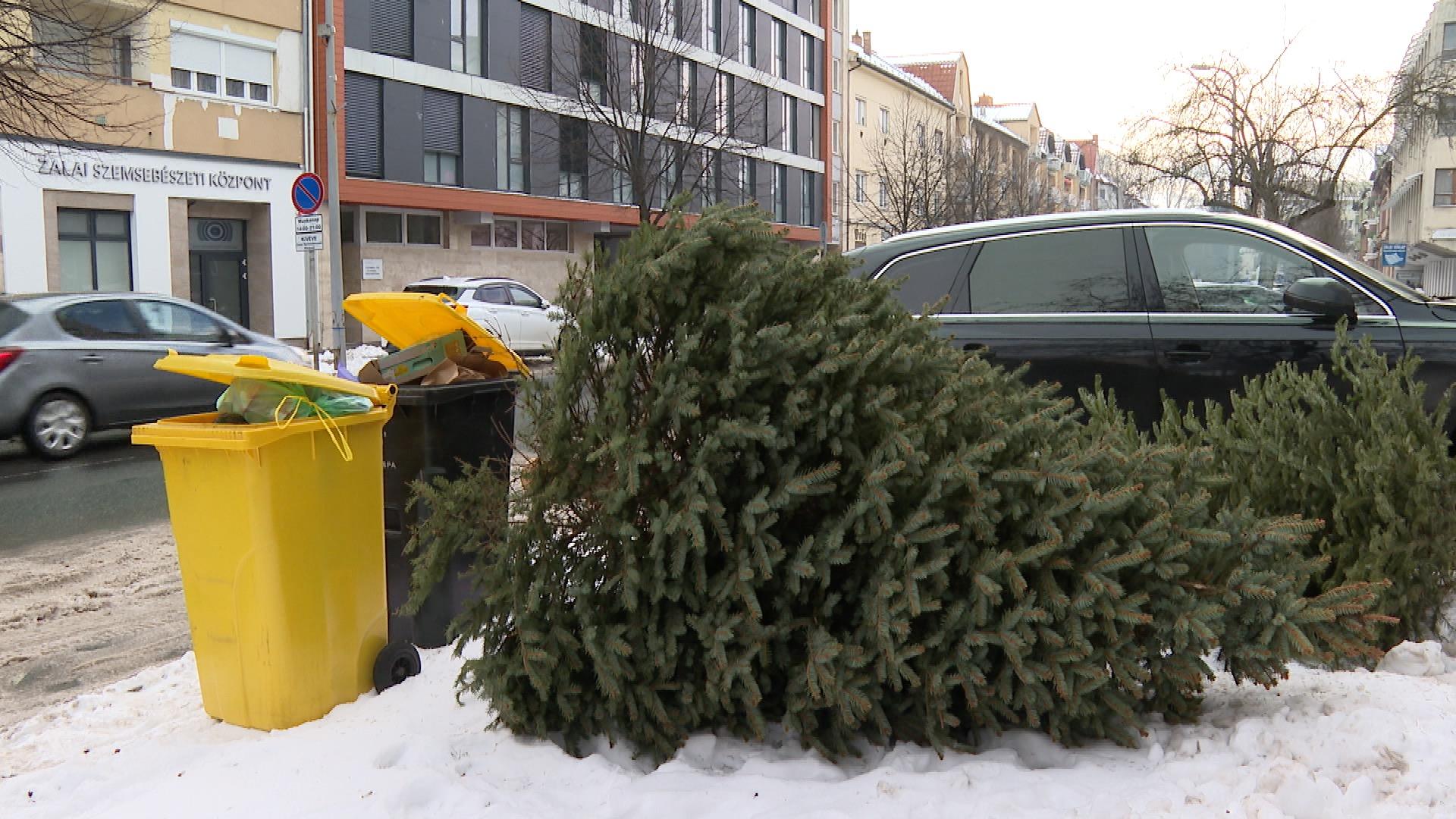A jól bevált gyakorlat szerint a társasházaknál a kidobásra szánt örökzöldeket a konténerek közelében helyezték el. A korábbi évek felhívásainak köszönhetően már csak elvétve maradt egy-két szaloncukorpapír az ágakon.