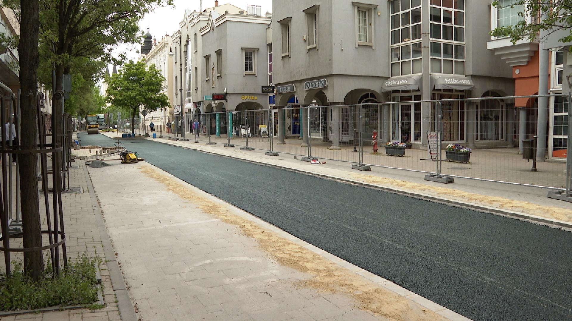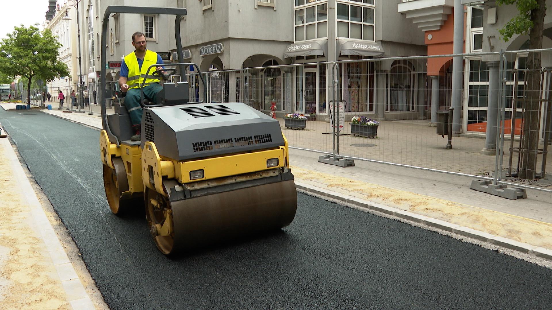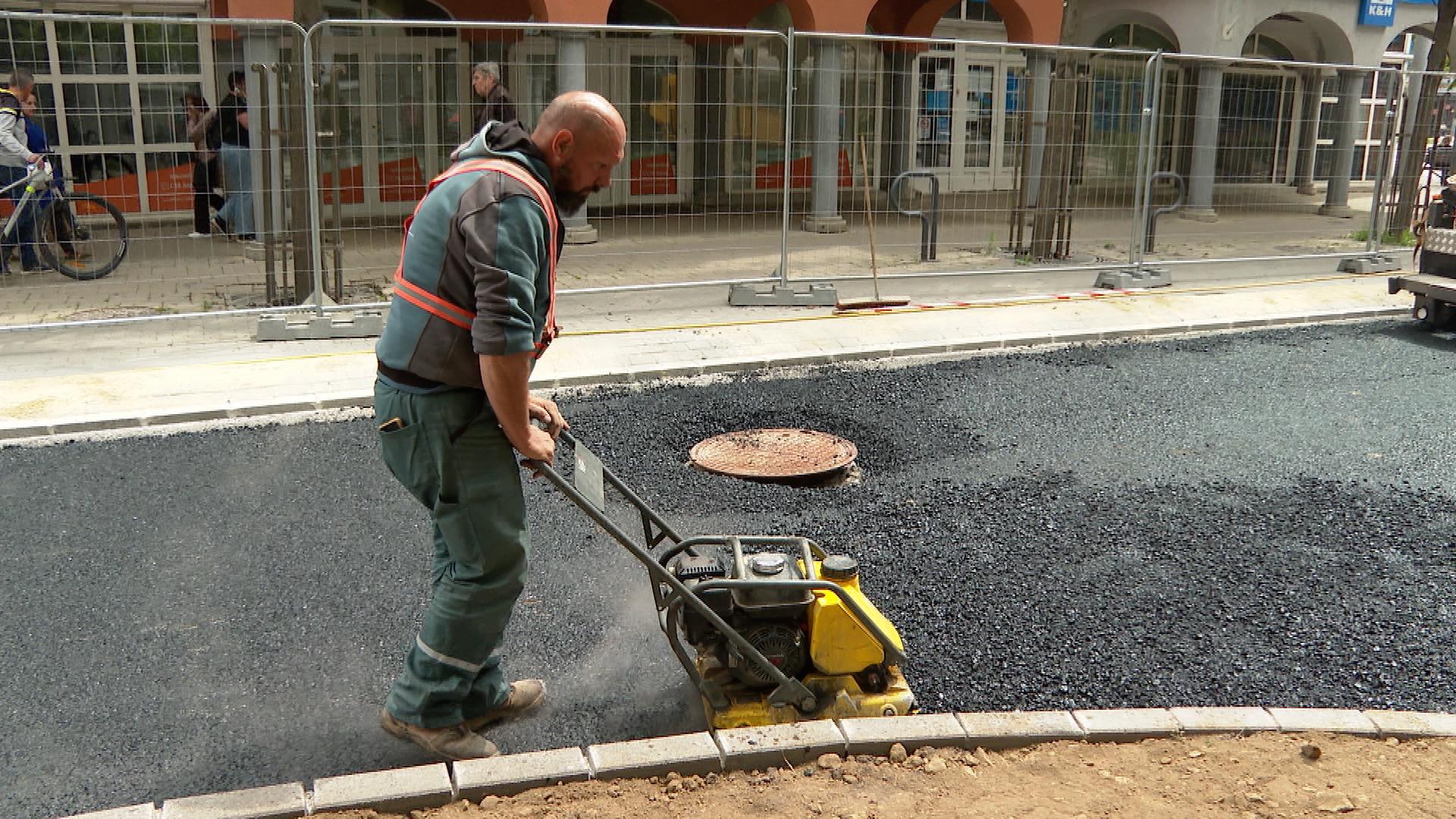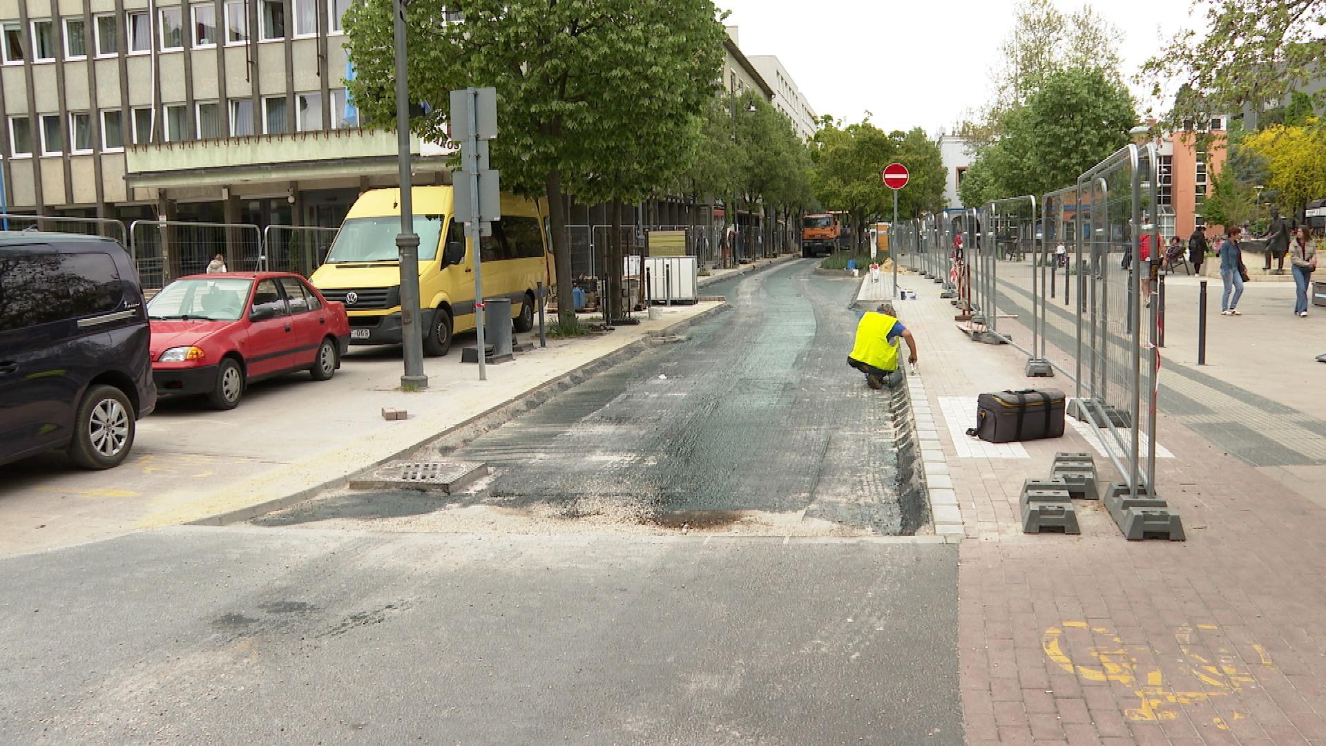 A Dísz tér északi sarkán forgalomlassító küszöböt alakítanak ki az utca teljes szélességében. Jövő szerdán már a kopóréteget terítik, csütörtökön pedig felfestik az útburkolati jeleket – tájékoztatta a Médiacentrumot Szak Tibor, a polgármesteri hivatal út- és közműépítési csoportjának vezetője, aki azt is elmondta, hogy a tervek szerint május 8-án, pénteken megindulhat a forgalom a felújított szakaszon.