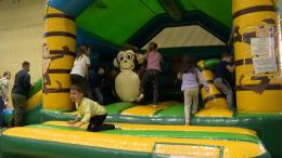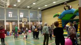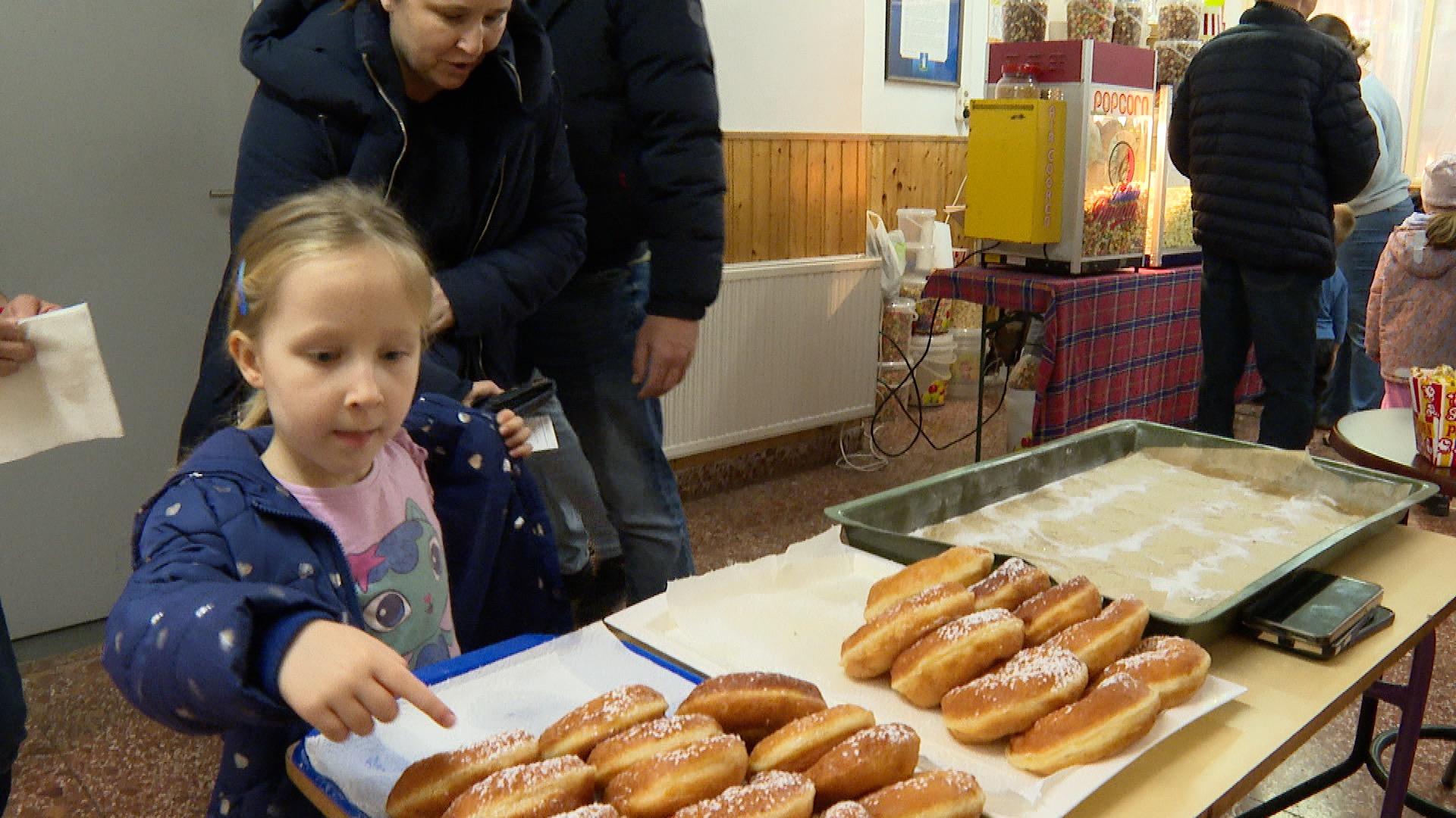 A gyermekeket kerek, szalagos fánkkal kínálták, amelyeket a Kertvárosi Nyugdíjas Klub tagjai sütöttek aranybarnára. Uzsonna után a kicsik a tornateremben a kismotorokat, színes labdákat és a légvárat vették birtokba.