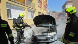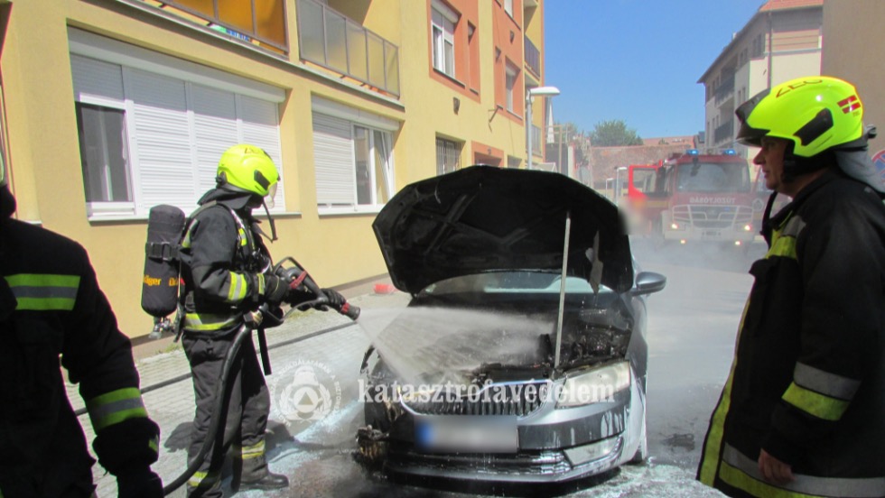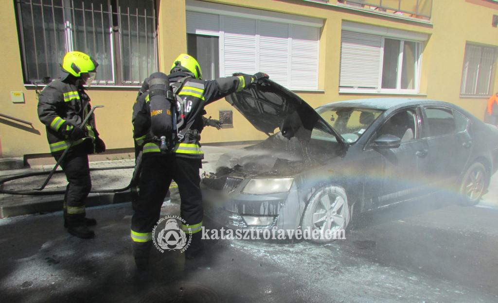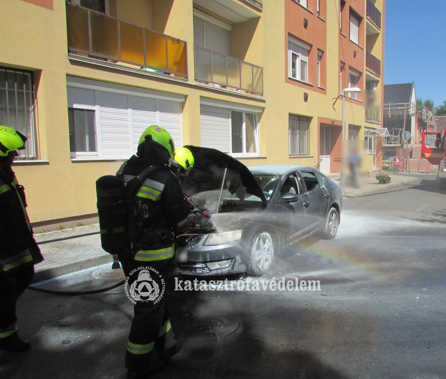 Kigyulladt egy személyautó motortere és az egyik kereke Zalaegerszegen, a Takarék közben.