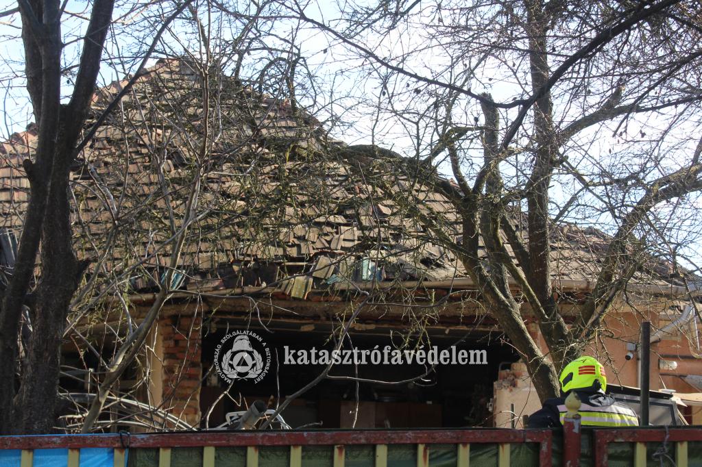 A katasztrófavédelem tájékoztatása szerint az épület fala megdőlt, a tető megroggyant, a házban tűz is keletkezett.