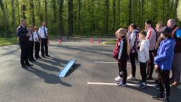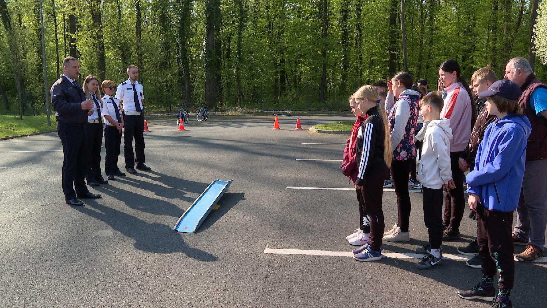 Két csapatban, külön a lányok és a fiúk vették birtokba a versenypályává alakult parkolót. Itt ügyességi feladatokat teljesítettek, majd írásbeli tesztet kellett megoldani.