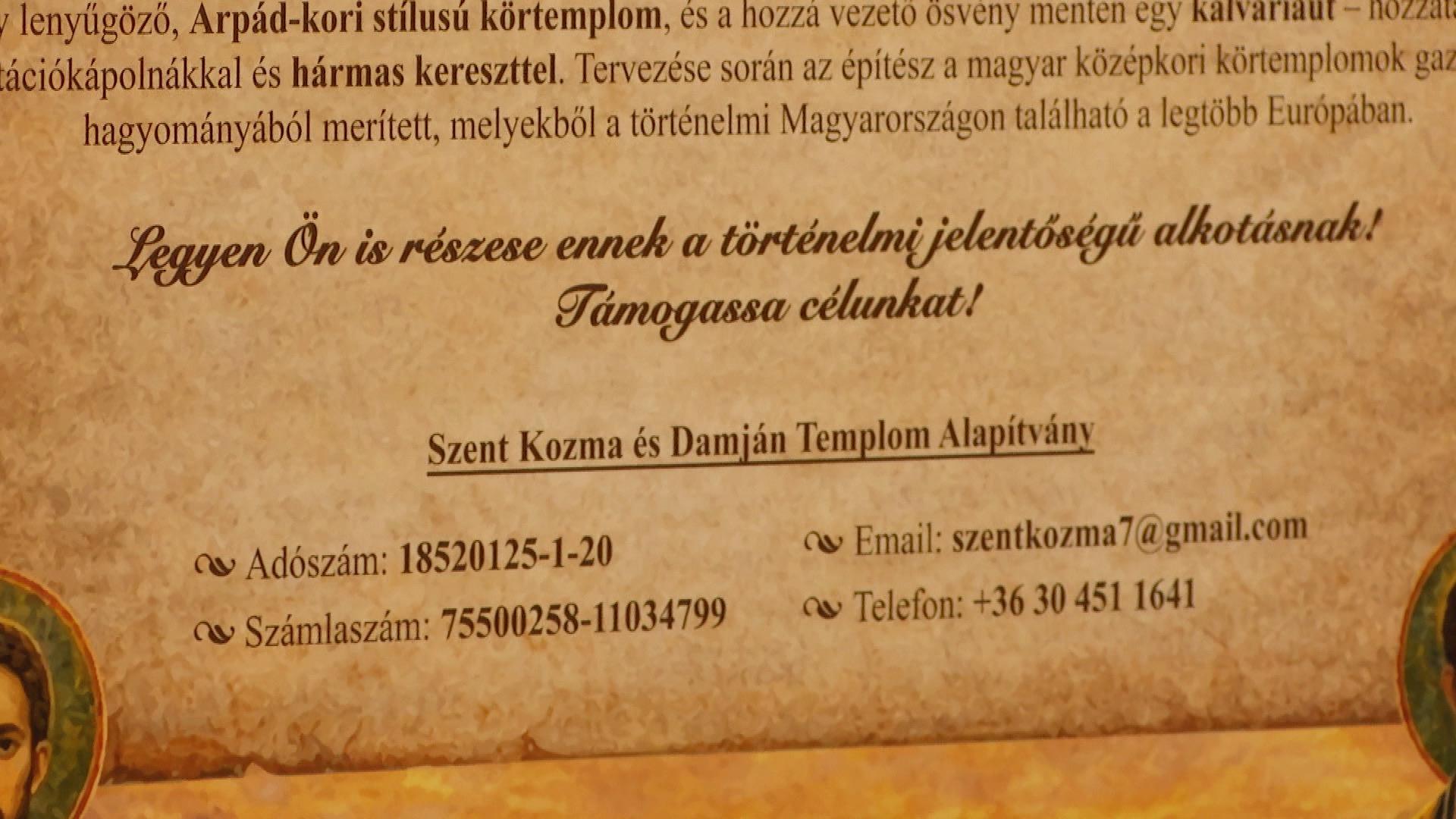 A Szent Kozma és Damján Alapítvány által kezdeményezett beruházás két éven belül elkészülhet, melyhez egy keresztutat is létrehoznak. A Lélek hangjai programsorozat idén több helyszínen folytatódik.