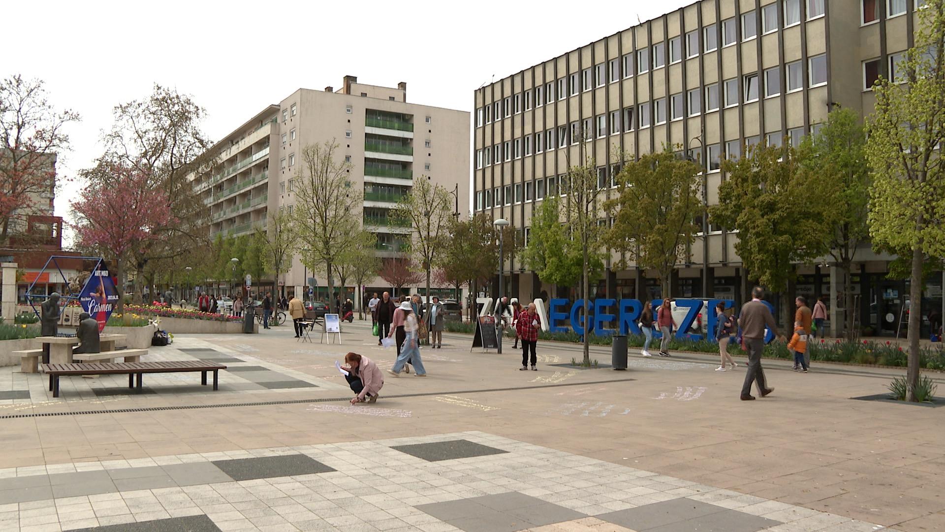 A zalaegerszegi Dísz tér volt az egyik állomás, ahol színes krétákkal és verseskötetekkel készültek a szervezők. A járókelőket arra kérték, hogy kedvenc versrészletüket írják az aszfaltra, hogy néhány napra városszerte láthatóak legyenek ezek a gondolatok. Akadt, aki gondolatébresztő célzattal osztotta meg kedvenc sorát.