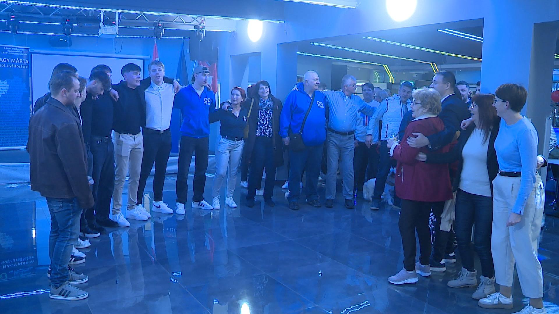A Tisza győzelmét jó hangulatú eredményvárón ünnepelték a szimpatizánsok.