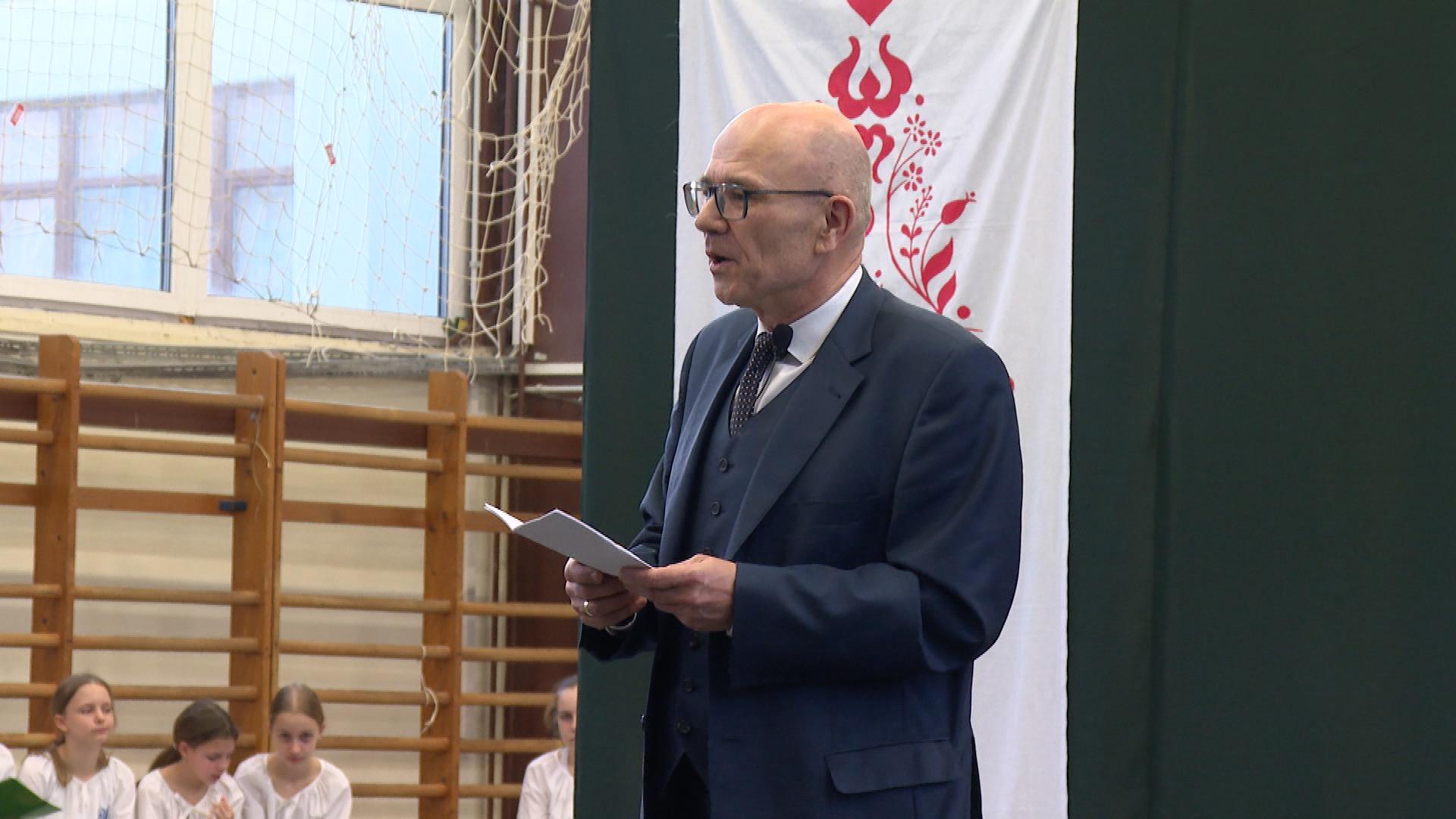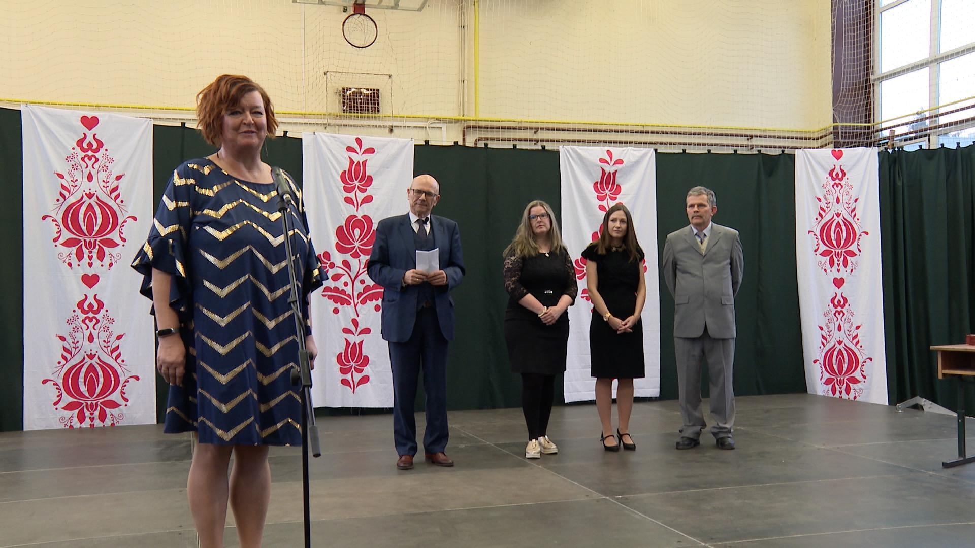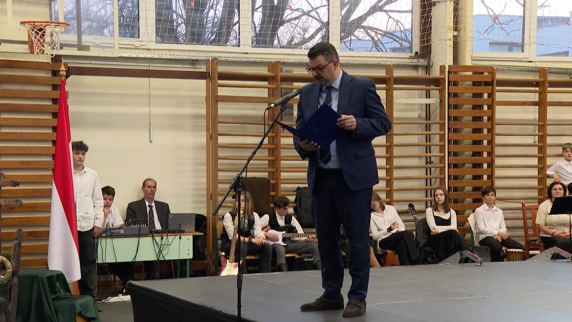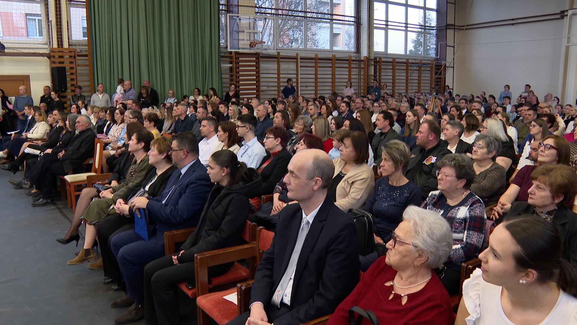 A zsúfolásig telt tornateremben az iskolaigazgató köszöntötte a vendégeket. Amint Makovecz Tamás fogalmazott, az elődök értékes örökséget hagytak a mostani generációra.