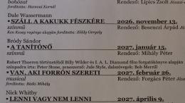 Egy nagyon színes, nagyon élvezetes évadnak nézünk elébe, ami nem kis munkát ró majd a társulatra mind színészi, mind műszaki szempontból. De én azt gondolom, hogy abban a helyzetben, amiben most van a színház – tehát prosperálunk, jó a bevételünk, nagyon sokan néznek bennünket, szeretik a színházat –, nem szabad visszafelé építkeznünk, hanem csak előre. Ennek jegyében állítottuk össze az évadot, melyben természetesen zenés darab is van, van benne komoly, magyar klasszikus, van benne vígjáték, vagy bohózat, ha úgy tetszik, van benne színmű. Azt gondolom, hogy mindenki megtalálja a magának tetsző kis szeletkét