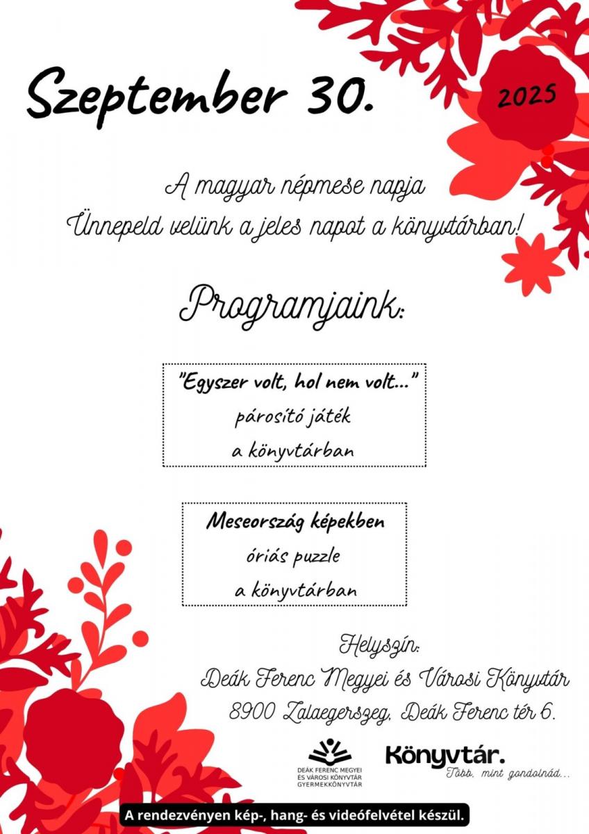 Szeptember 30-án, kedden ismét a meséké lesz a főszerep a Deák Ferenc Megyei és Városi Könyvtárban, ahol a magyar népmese napját ünnepelhetik együtt a kicsik és nagyok. A rendezvény izgalmas, játékos programokkal várja az érdeklődőket.