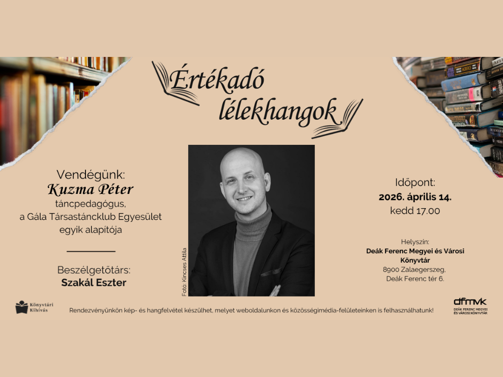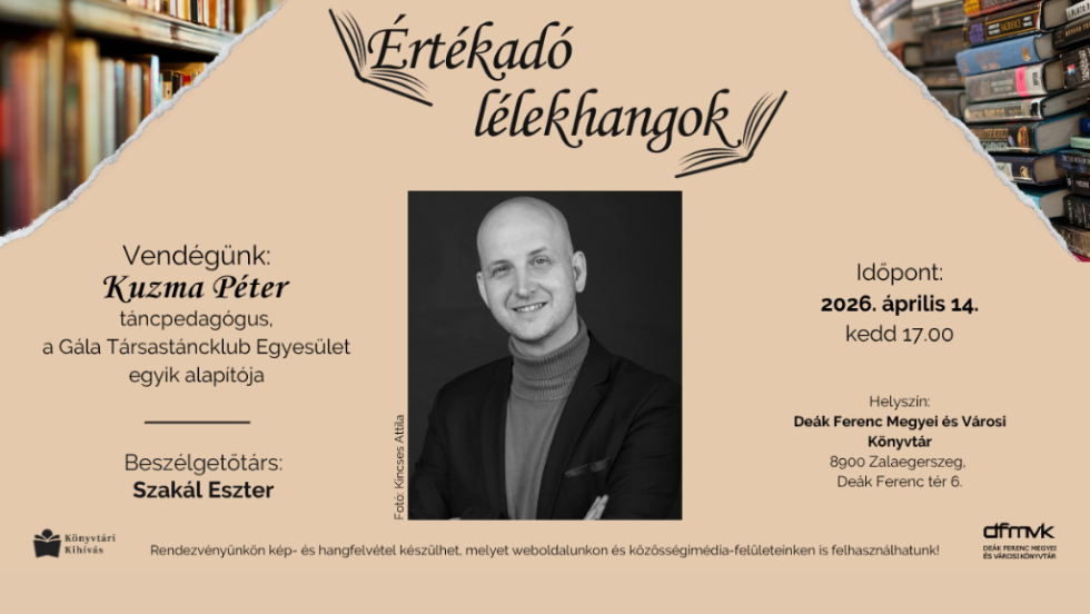 A Deák Ferenc Megyei és Városi Könyvtár folytatja „Értékadó lélekhangok” című sorozatát, amelyben ismert személyiségeket kérdeznek életútjukról, pályájukról és az olvasáshoz fűződő viszonyukról.