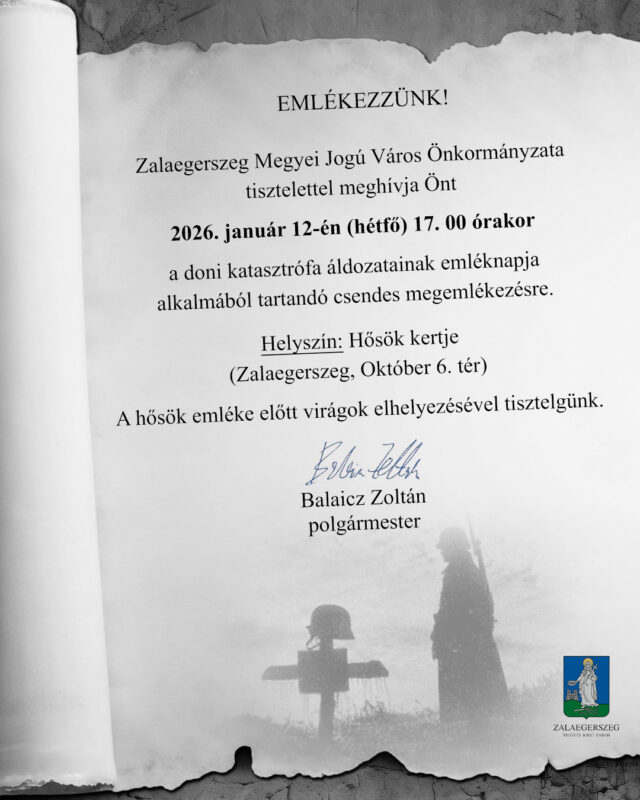 Zalaegerszeg Megyei Jogú Város Önkormányzata csendes megemlékezést tart a doni katasztrófa áldozatainak emléknapja alkalmából.