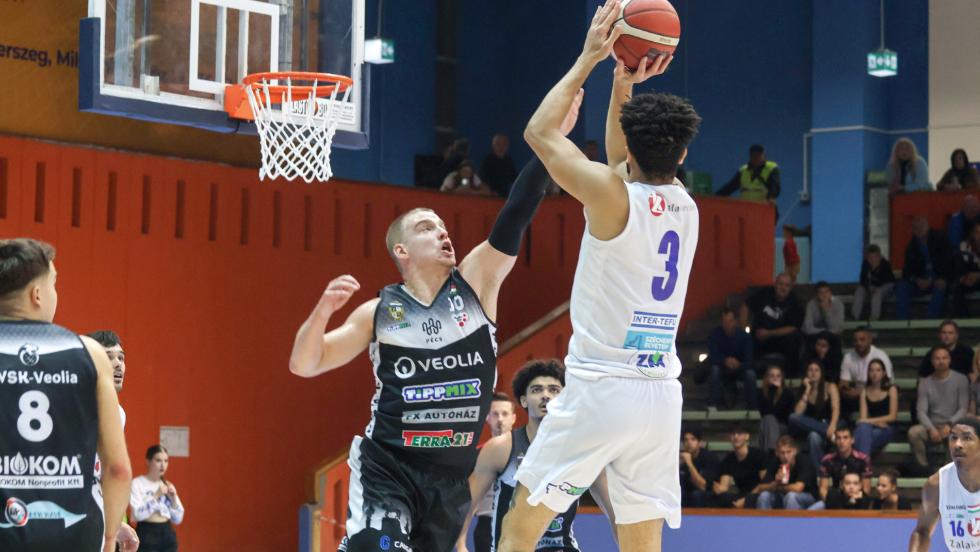 A találkozó elején a PVSK gyorsan magához ragadta a kezdeményezést, és egy 7–0-s rohammal kezdte a mérkőzést. A ZTE KK első pontjaira egészen a harmadik percig kellett várni, amikor Bigelow egy hármassal törte meg a gólcsendet. A hazaiak azonban továbbra is lendületben maradtak, és Archibald valamint Dzeletovic vezetésével a negyed végére négypontos előnyt építettek ki (25–21). A második játékrész elején egy gyors 5–0-s futással fordított a ZTE, ám ezt követően ismét pontatlanságok jellemezték a játékot, így a pécsiek visszavették a vezetést. A játékrész folytatásában szorosan egymás mellett haladtak a csapatok, egyik fél sem tudott komoly előnyt kialakítani. A félidő hajrájában Garrett és LeDay ponterős játékának köszönhetően sikerült kiegyenlíteni, de a szünetre így is minimális hazai előnnyel vonultak a csapatok (45–43).
