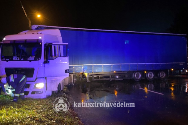 Elakadt kamiont mentettek a tűzoltók Zalában - VIDEÓVAL -